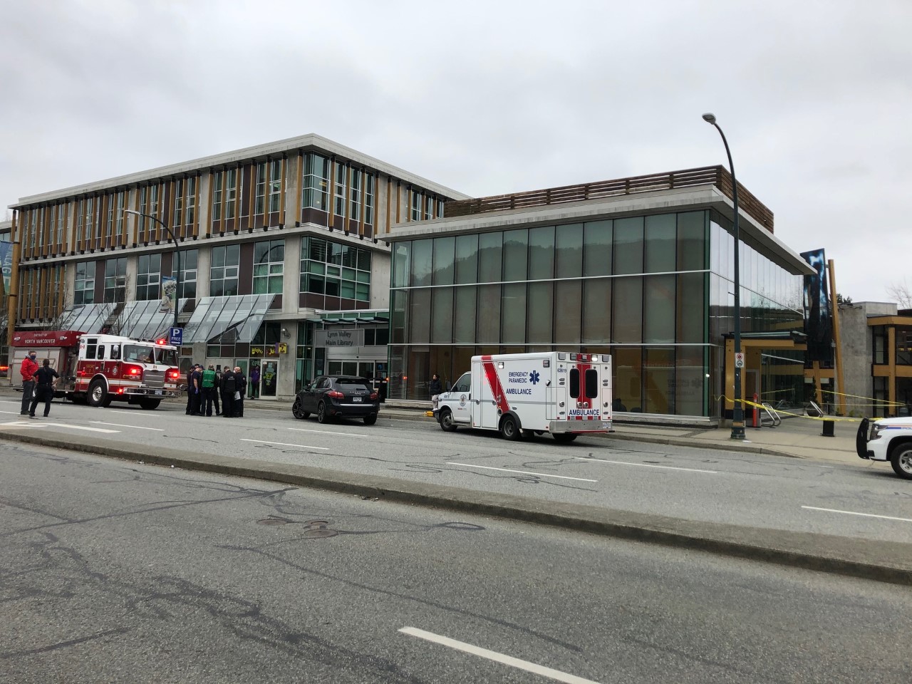 Ambulance service at the scene of a multiple stabbing at the lynn valley branch of the north vancouver public library on saturday, march 27.